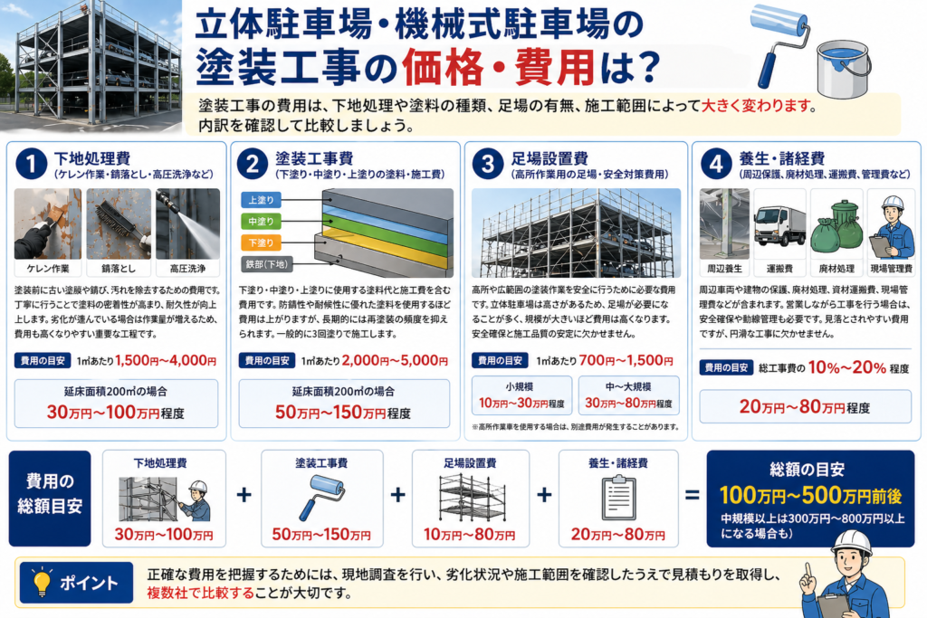 立体駐車場・機械式駐車場の塗装工事の価格・費用は?