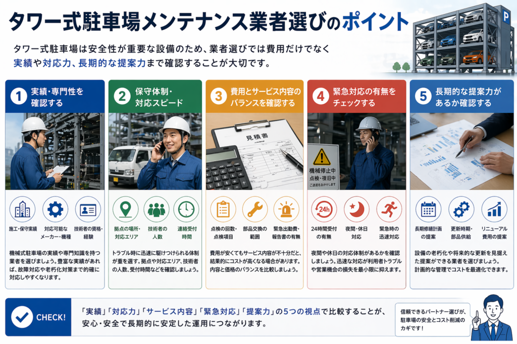 タワー式駐車場メンテナンス業者選びのポイント